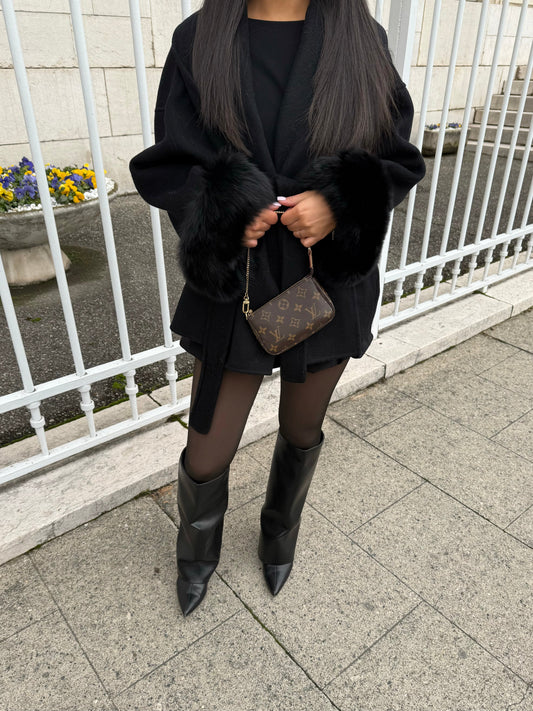 SAVE 50%BLACK WOOL COAT WITH FUR