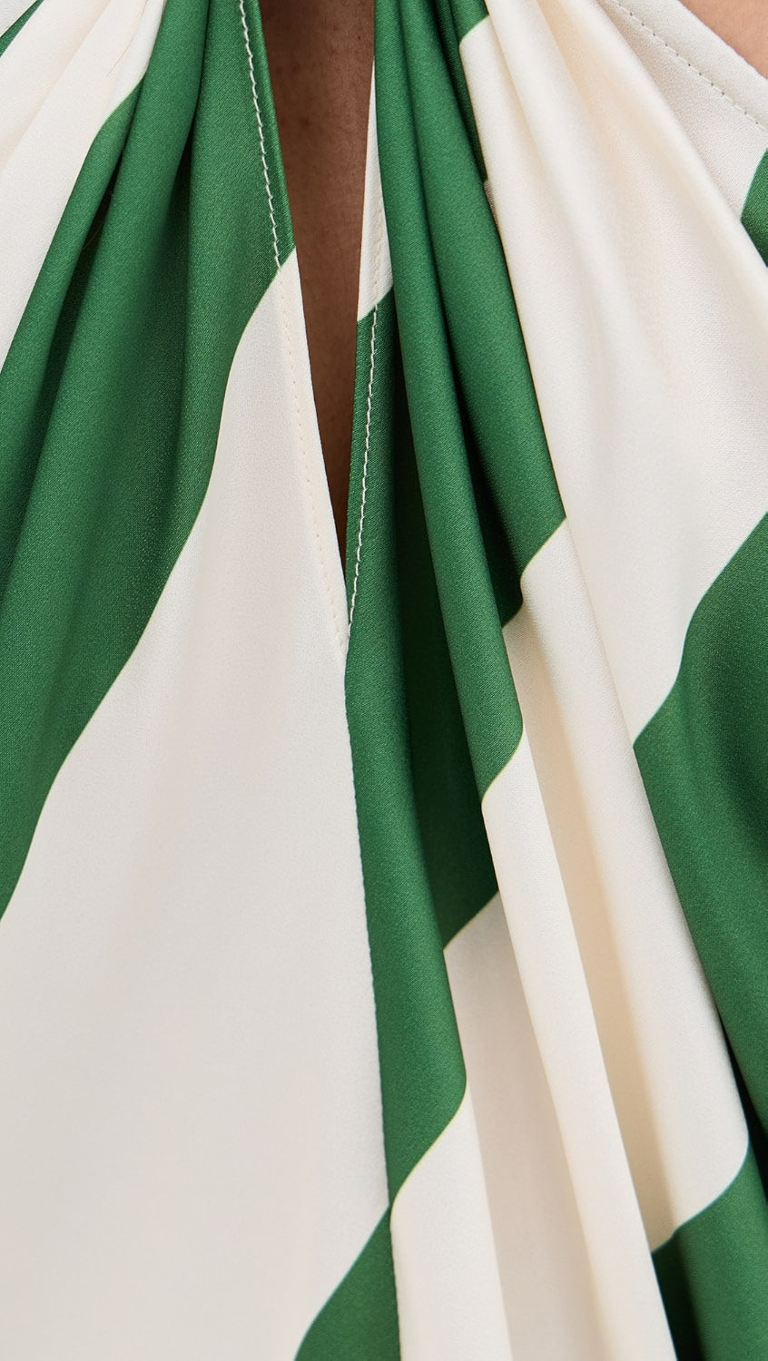 Make a bold statement with the Noa Maxi Dress, a stunning halter dress featuring bold green and white stripes. The simple yet elegant tie-neck design and flowing silhouette make it the perfect choice for summer getaways, beach parties, or casual outdoor events. This dress is designed to keep you cool while radiating effortless style and grace.